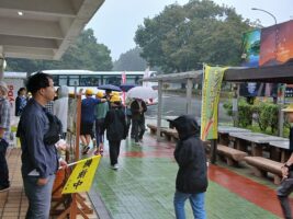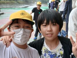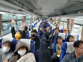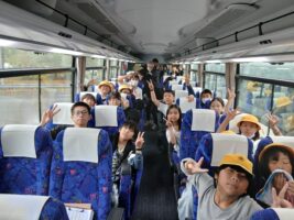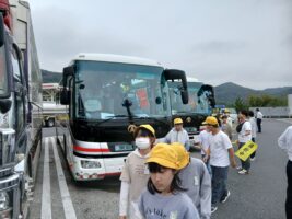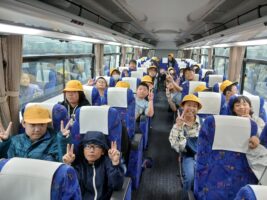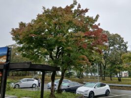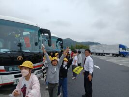 佐野SAと日光口PAでトイレ休憩です。日光口PAでは紅葉が始まったもみじが子どもたちを迎えてくれました。これから、いろは坂を上ります。
