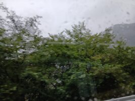 雨のいろは坂が子どもたちを迎えてくれます。バスから眺める景色は白い雲に覆われています。霞の呼吸だ!……という声も聞こえてきます。