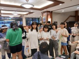 6年生修学旅行⑧ 仲町小の様子 2025.10.16 ネイチャーガイドさんに別れを告げて、今日の宿泊地の奥日光湯元温泉にある、奥日光高原ホテルに到着しました。雨に濡れた体が冷えないように着替えをしてから、いざお土産コーナーへ。美味しそうなお菓子や思い出に残る友達とおそろいのグッズなどを買って楽しんでいました。また、お風呂では硫黄泉の大浴場に大満足!先生も早くあたたまってくださいねと、あたたかい声をかけてくれる子どもたちです。