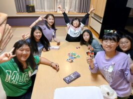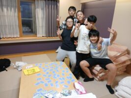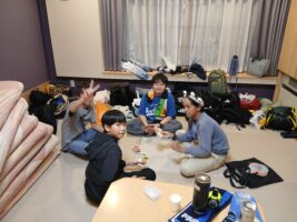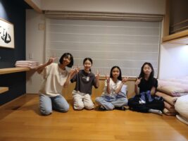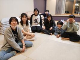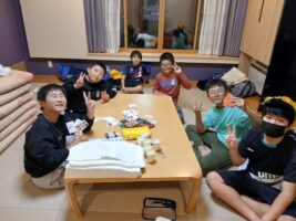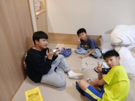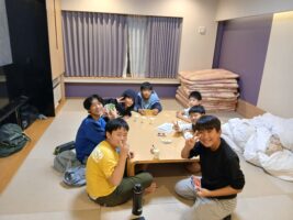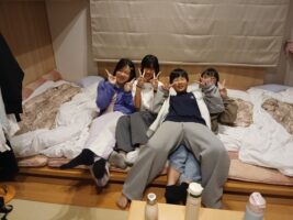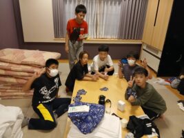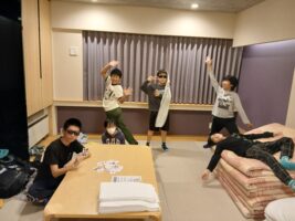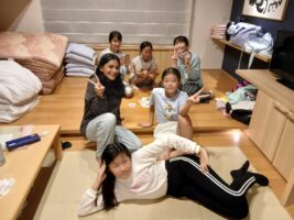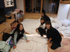 6年生修学旅行⑨ 仲町小の様子 2025.10.16 お風呂もお土産も一息ついて、各部屋でそれぞれが楽しく過ごしています。トランプやUNOなどのカードゲームを楽しんだりダンスをしたり、中には協力しあって布団を敷いたりしていました。