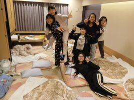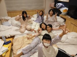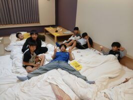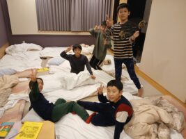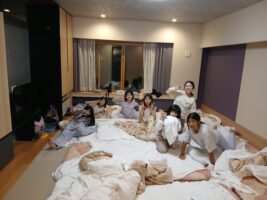 6年生修学旅行⑫ 仲町小の様子 2025.10.16 班長会で今日の振り返りをしたり、明日のことを確認したりして、就寝準備に向かいます。今回はホテル時間が多く、友達と楽しいひとときを過ごせたようです。 いまの湯元温泉は雨。子どもたちは特に体調をくずすこともなく寝息をたてています。この後雨は止んで、晴れていく予報です。明日の活動も楽しみです。それでは、また明日。おやすみなさい。