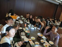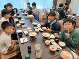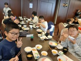 6年生修学旅行⑭ 仲町小の様子 2025.10.17 今朝の朝食も美味しくて、子どもたちはたくさんおかわりをしています。同時に朝の集いと退館式も行ってこれからホテルを後にします。ホテルのみなさん、お世話になりました。素敵な思い出になりました。(こどもたちはもっとここに居たいとしきりに言っています)